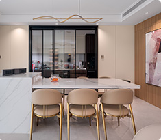 三代同堂的家庭对收纳、功能的需求高同时也不能舍弃生活品质,设计师在满足不同家庭成员的需求基础上,空间以黑白灰为主,简洁干净的设计思路,凸显主人的情绪与表达,为家定下格调。