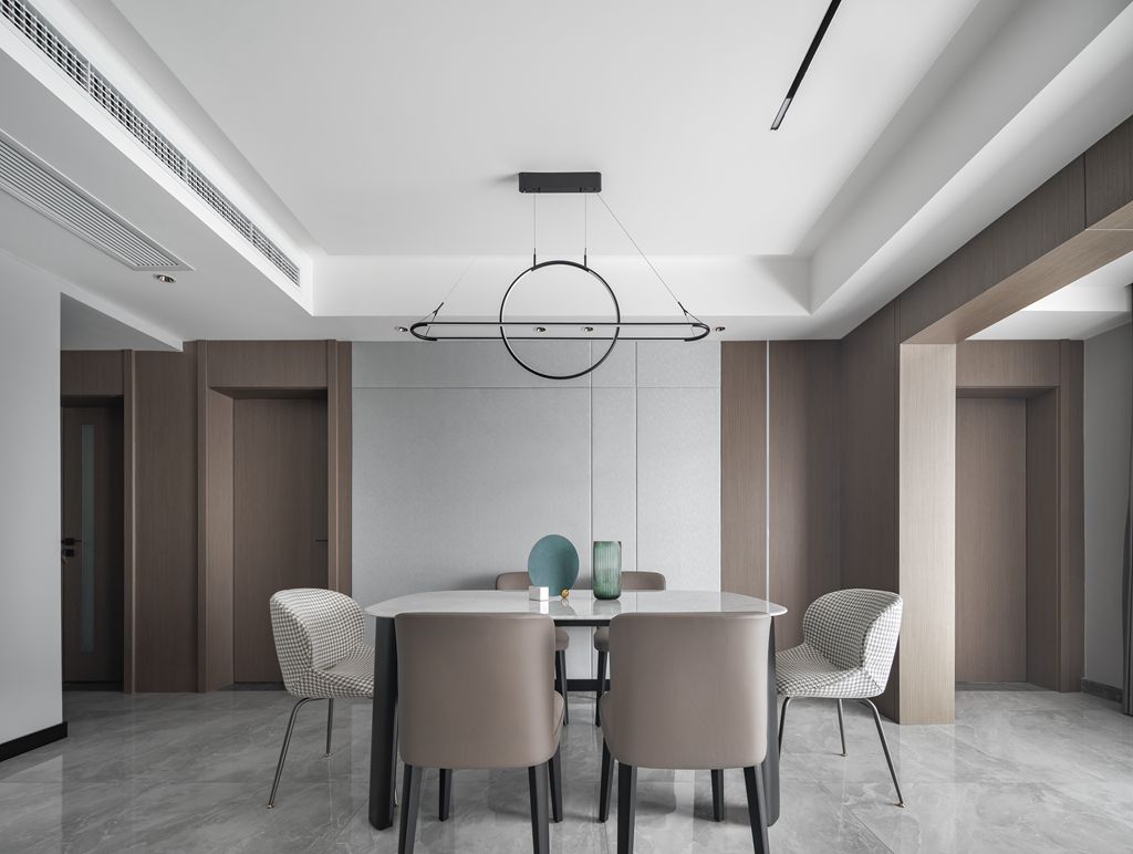 客餐厅以自由、模糊、开放为出发点,让家的空间之间零距离。从“方”的序列性进入“圆”的浑融感,将空间视觉感与整体品质提升到最佳状态,让用餐变得有仪式感。
