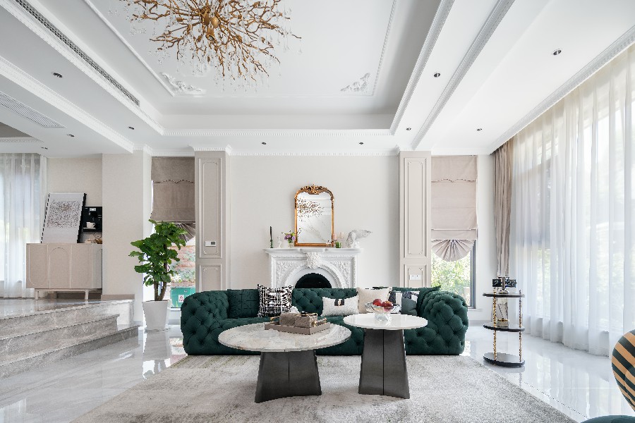 雕花的欧式壁炉内燃烧着居者对生活的炽热情感